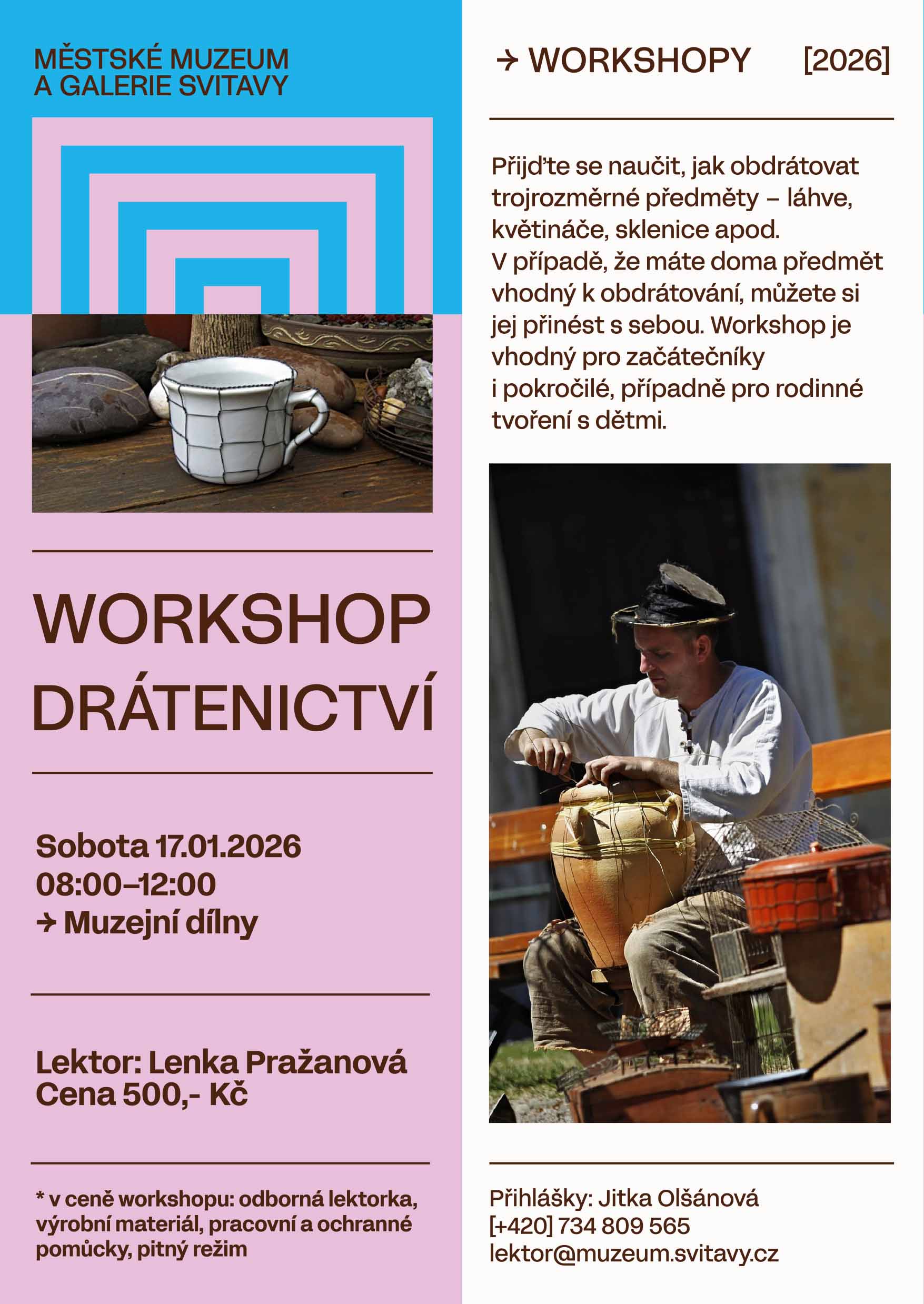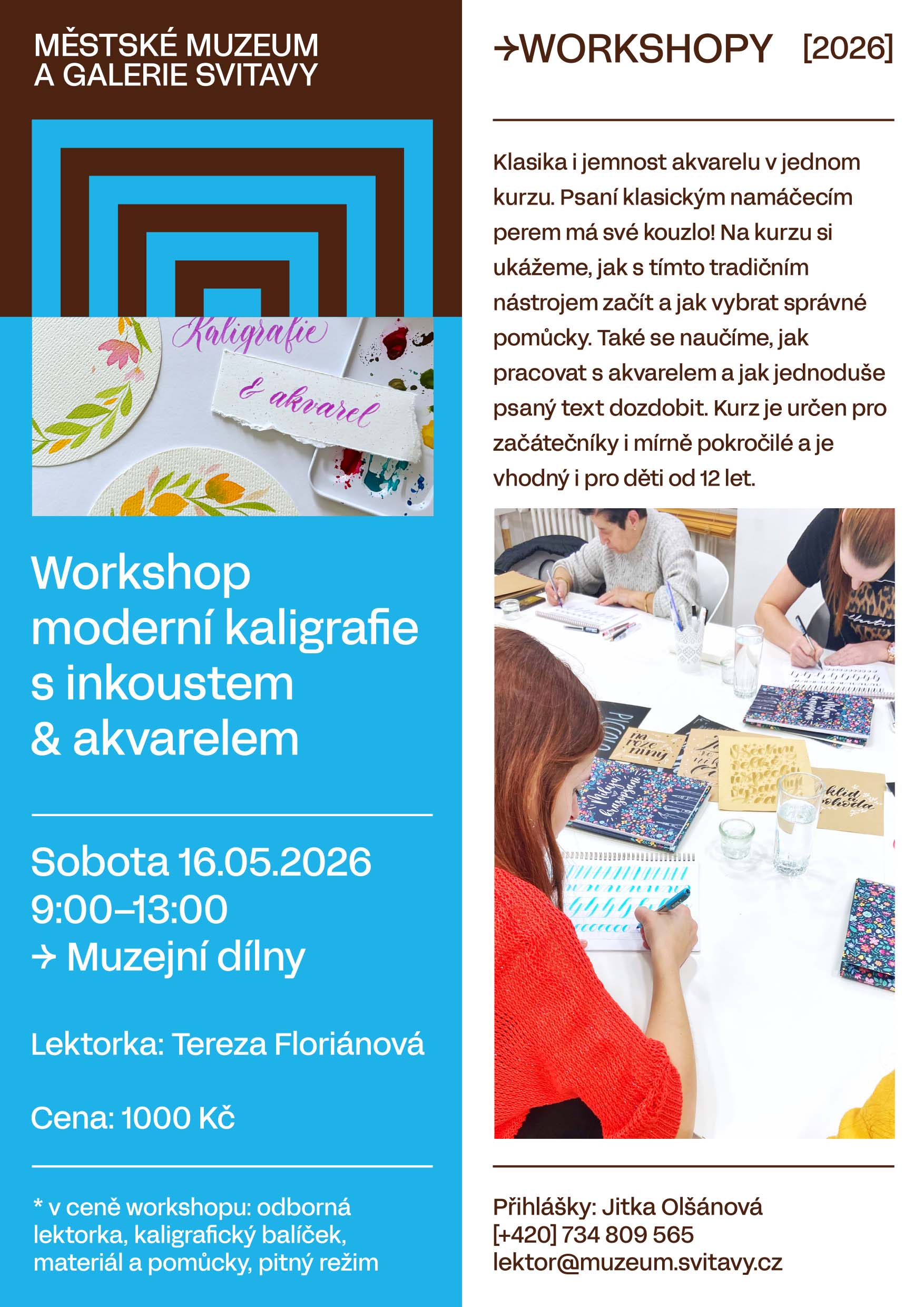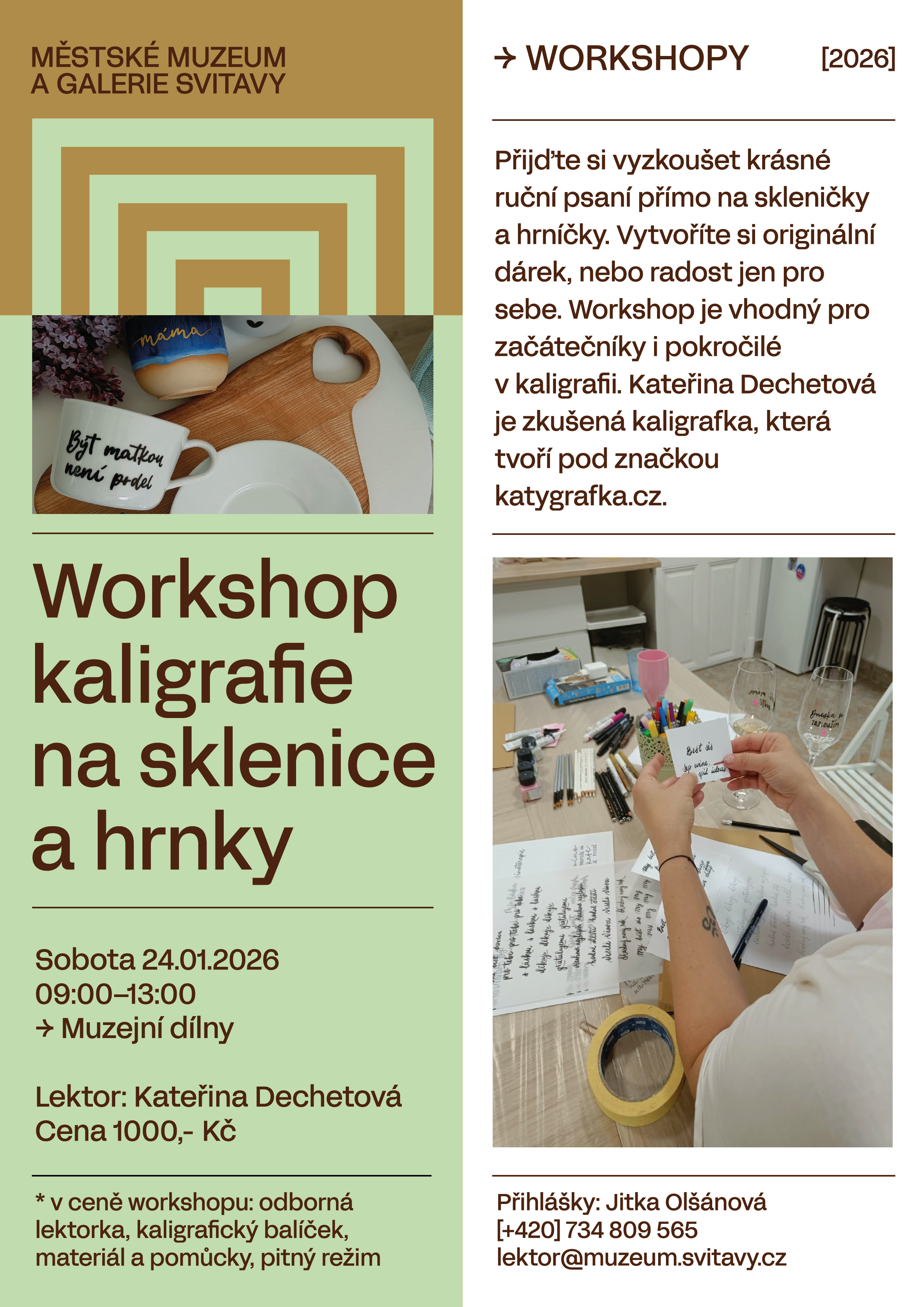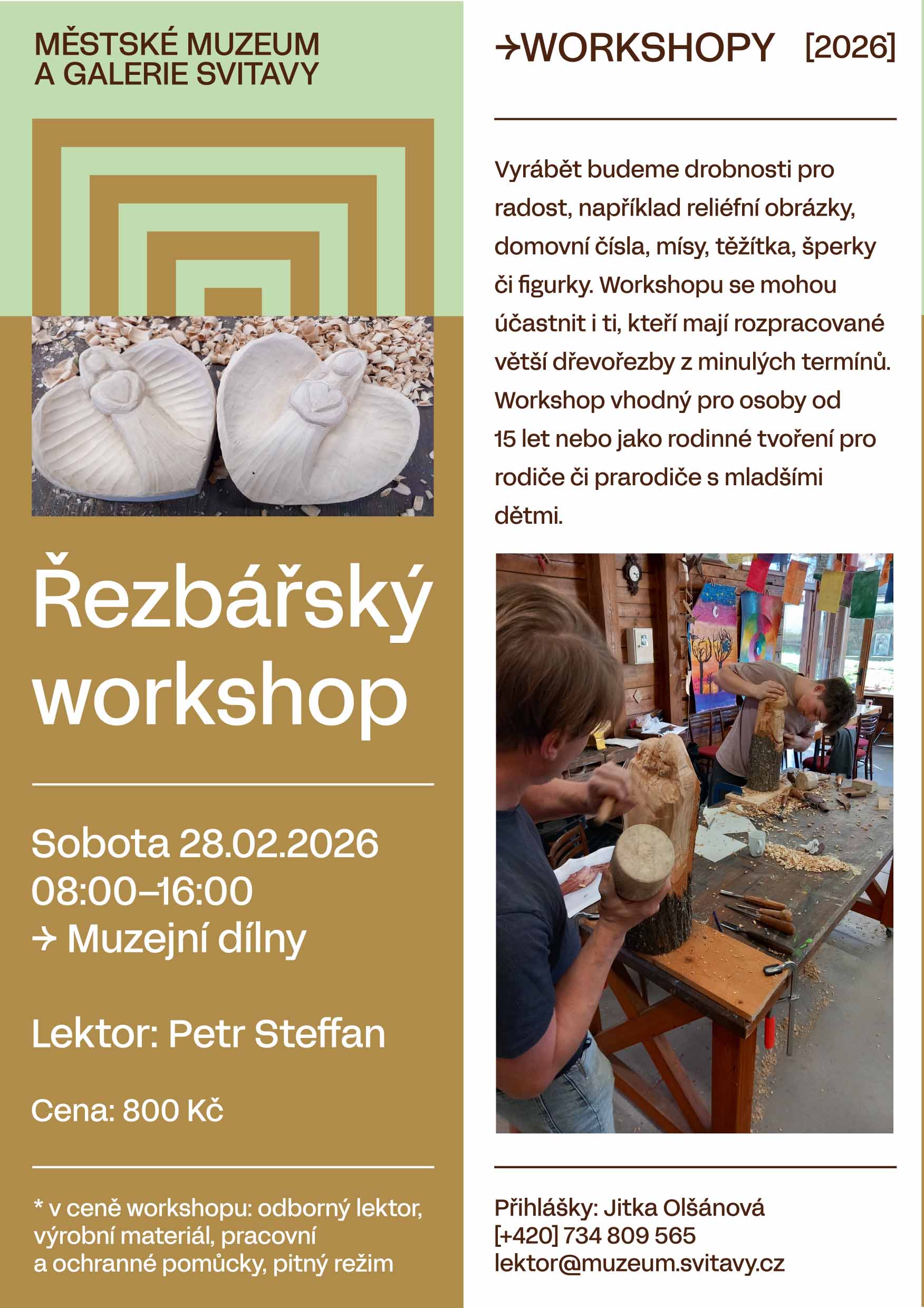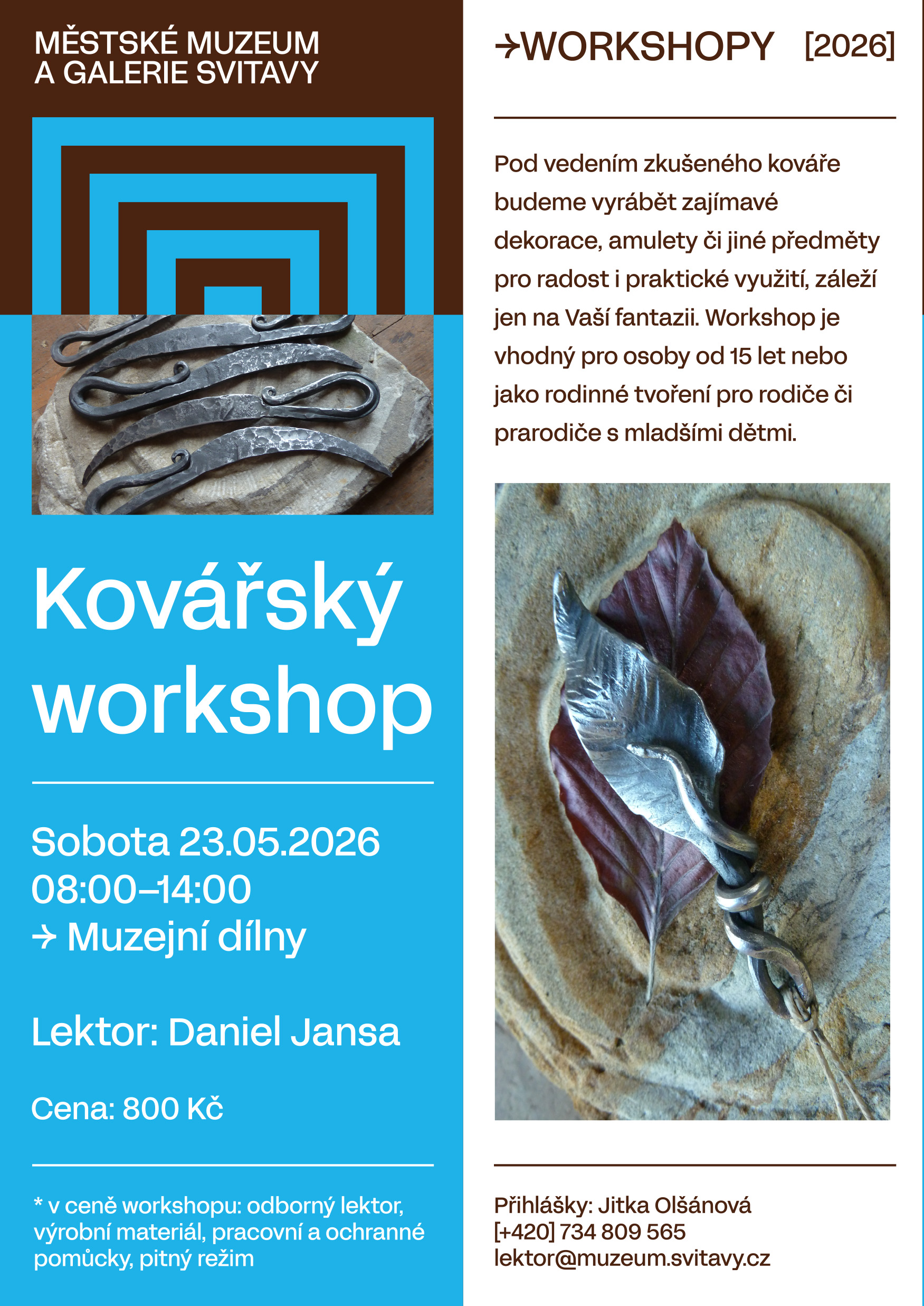 Na workshopy je třeba se přihlásit předem na lektor@muzeum.svitavy.cz nebo na tel 734 809 565 kontaktní osoba Jitka Olšánová. Nebo dle informací na každém plakátku akce, který si můžete výše vždy otevřít a prostudovat.